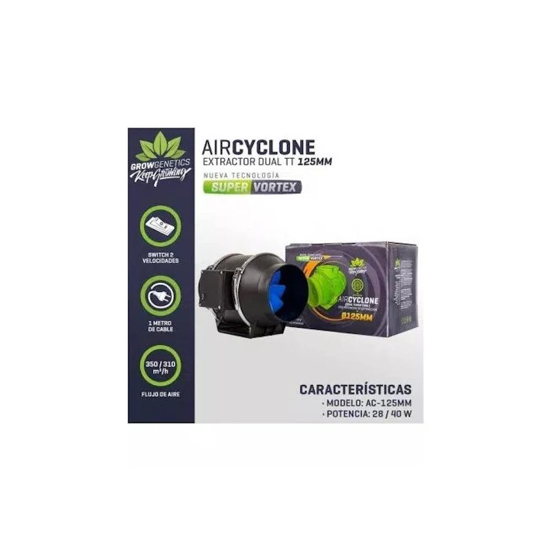 El extractor dual TT 125mm de Grow Genetics es la solución perfecta para mantener un ambiente óptimo en tu cultivo de cannabis. Con su diseño de doble turbina, este extractor garantiza una extracción eficiente y silenciosa de olores y humedad. Su tamaño de 125mm lo hace ideal para espacios de cultivo de tamaño mediano. No pierdas más tiempo y adquiere el extractor dual TT 125mm de Grow Genetics para maximizar la calidad de tu cosecha.