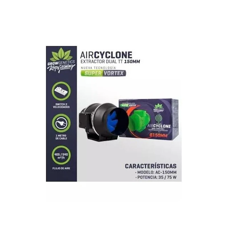 El extractor dual TT 150mm de Grow Genetics es la solución perfecta para mantener un ambiente óptimo en tu cultivo de cannabis. Diseñado con la más alta calidad y tecnología, este extractor garantiza una extracción eficiente y silenciosa de olores y humedad, creando un entorno ideal para el crecimiento saludable de tus plantas. Con un diámetro de 150mm, este extractor es capaz de mover grandes volúmenes de aire, asegurando una ventilación adecuada en tu espacio de cultivo. Su diseño dual te permite conectar dos conductos de ventilación, lo que maximiza la extracción y minimiza la acumulación de calor. El extractor dual TT 150mm de Grow Genetics cuenta con un motor potente y duradero, que garantiza un funcionamiento continuo y confiable. Además, su nivel de ruido reducido te permite disfrutar de un ambiente tranquilo y discreto. Este extractor es fácil de instalar y utilizar, gracias a su diseño compacto y ligero. Además, su construcción resistente y duradera asegura una larga vida útil, sin necesidad de reemplazos frecuentes. No comprometas la calidad de tu cultivo. Obtén el extractor dual TT 150mm de Grow Genetics y asegura un ambiente óptimo para el crecimiento de tus plantas de cannabis. ¡Potencia tu cultivo con la mejor tecnología disponible en el mercado! -